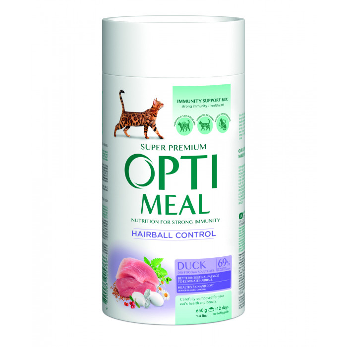 OPTIMEAL™. Повнораціонний сухий корм для дорослих котів з ефектом виведення шерсті качка