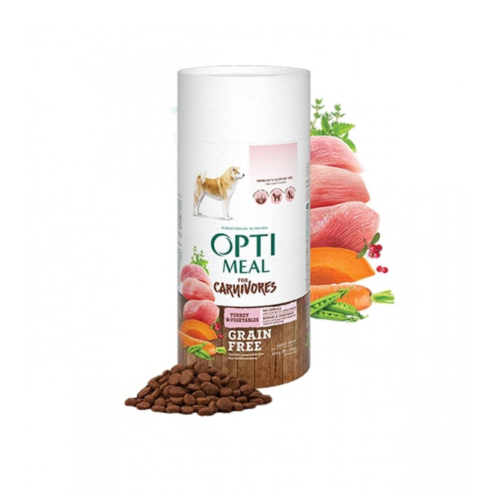 Сухий корм OPTIMEAL беззерновий для дорослих собак всіх порід ІНДИЧКА та ОВОЧІ 0,65 кг