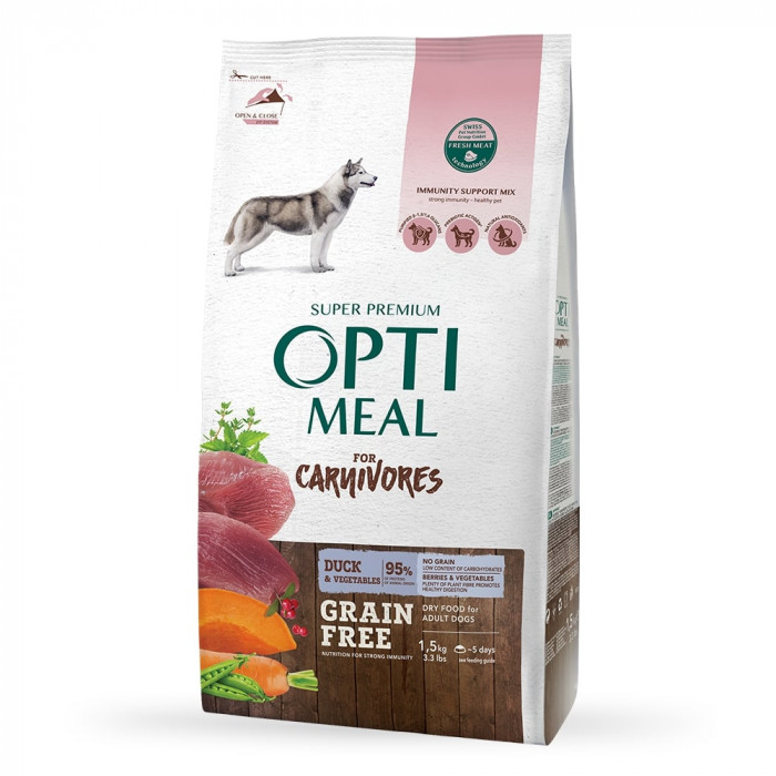 Сухий корм OPTIMEAL беззерновий для дорослих собак всіх порід КАЧКА та ОВОЧІ 1,5 кг